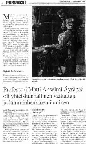 Matti Anselmi Äyräpää, Puruvesi-lehti 11.6.2001