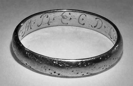 Matias Reinhold Europaeuksen ja Catharina Dannenbergin vihkisormus 250 vuoden